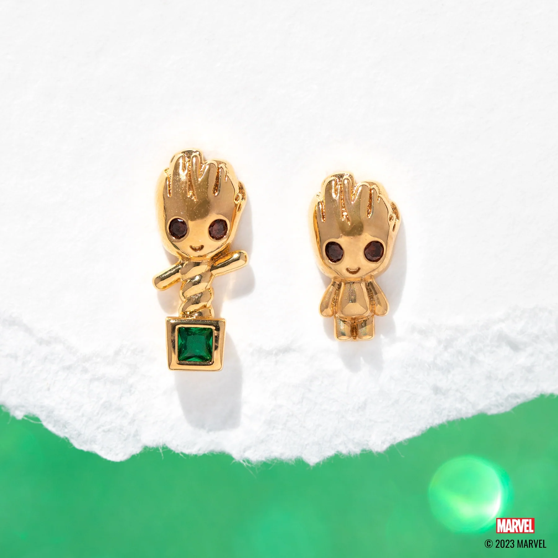 Behold, everyone's favorite little flora colossus - Marvel's Guardians of the Galaxy Groot, now available as a charming set of stud earrings! Our Marvel's Guardians of the Galaxy Groot Studs feature a delightful mismatched pair, with one earring showcasing a potted Groot complete with brown stone eyes and an emerald green stone pot and the other depicting Groot standing tall with the same adorable brown eyes. These quirky and cute earrings are the perfect accessory for fans of Marvel's Guardians of the Galaxy who love to get into some mischievous antics.