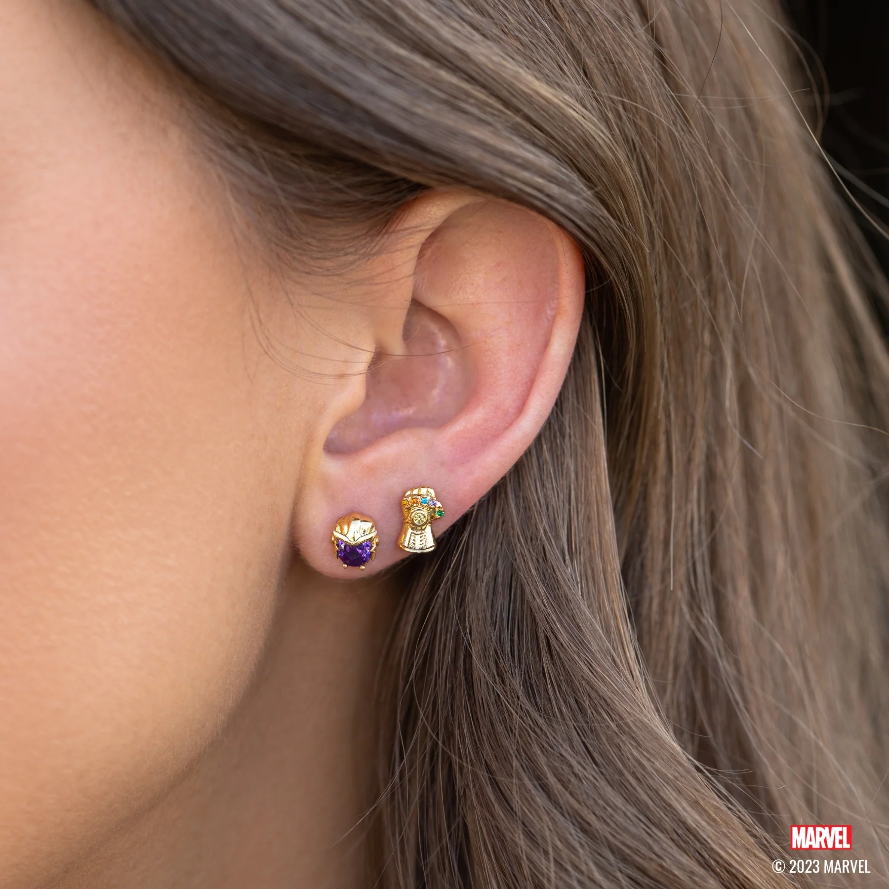 Get ready to show off the most feared being in the cosmos in all his glory - Thanos. Our Marvel's Thanos Studs feature the mad titan in his signature violet hues, accompanied by the powerful Infinity Gauntlet adorned with all of the Infinity Stones. Cosmic power and an incredibly stylish ear stack are all within reach with these studs!